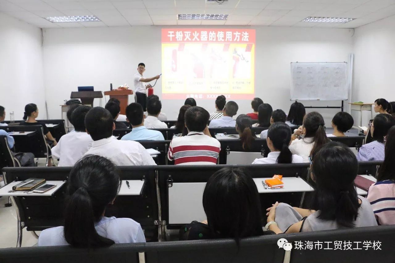 为了切实提高我校全体师生的安全意识,普及消防知识,10月11日下午,我校举办了一场主题为消防安全知识培训讲座以及消防演练的宣传教育活动,特邀请了珠海市政安防火宣传中心的陈教官以及相关工作人员到我校进行这次宣传教育活动。