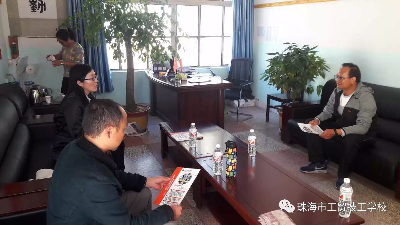 珠海市驻怒江扶贫工作组张家富副局长带领集团考察组,与怒江州教育局职教科彭文胜科长在交流职教在怒江的发展情况。