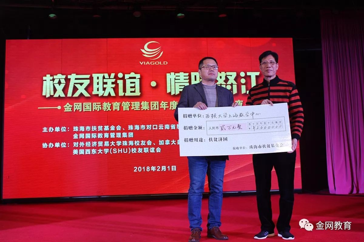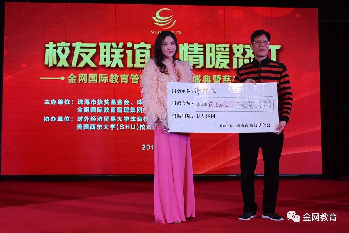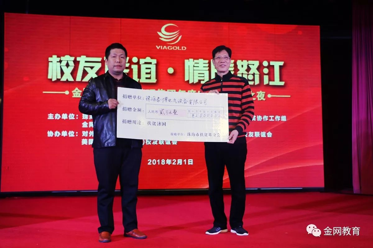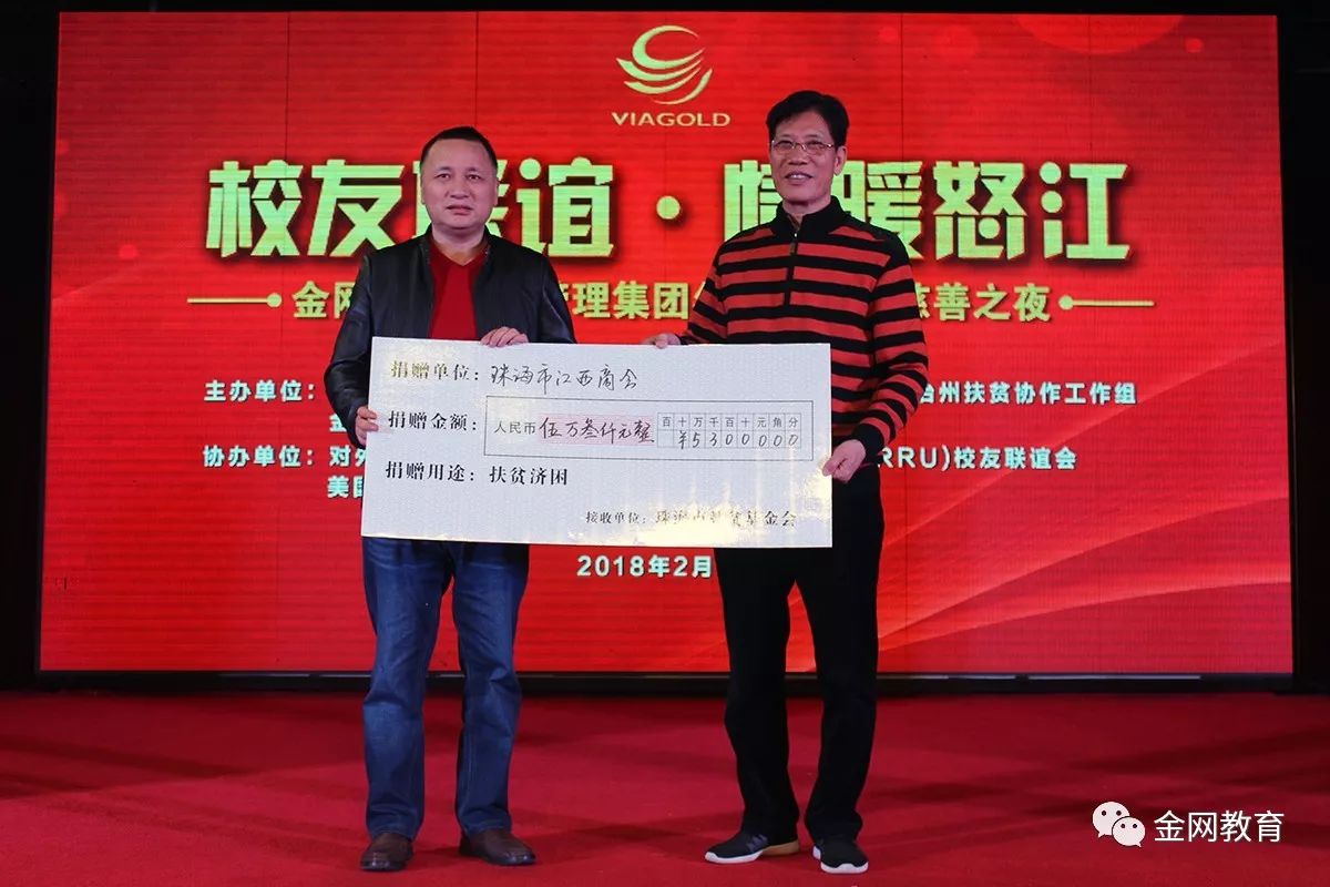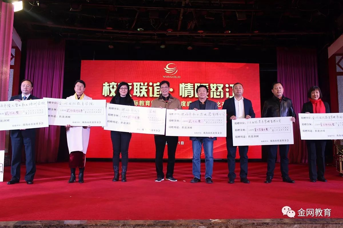 此次慈善晚会得到了社会各界的大力帮助与支持,在活动进行中,金网国际教育管理集团携同到场的众多校友、社会名流、以及各商业协会代表等共同发起了慈善募捐,共筹集善款百万余元!所得善款捐献给珠海市扶贫基金会,定向用于怒江劳动力短期技能培训和三年技工教育。金网国际教育管理集团作为中国民办教育党建先进示范单位,除把国内外优质教育资源引进来向公众开放外,主动扛起教育扶贫的担子也是履行社会责任的一部分。集团下属的珠海市工贸技工学校将接收来珠海进行技能教育的怒江青年,全额免费提供学费、交通费和生活资助,并安排推荐就业,达到“培训一个技工,脱贫一个家庭”的目的。