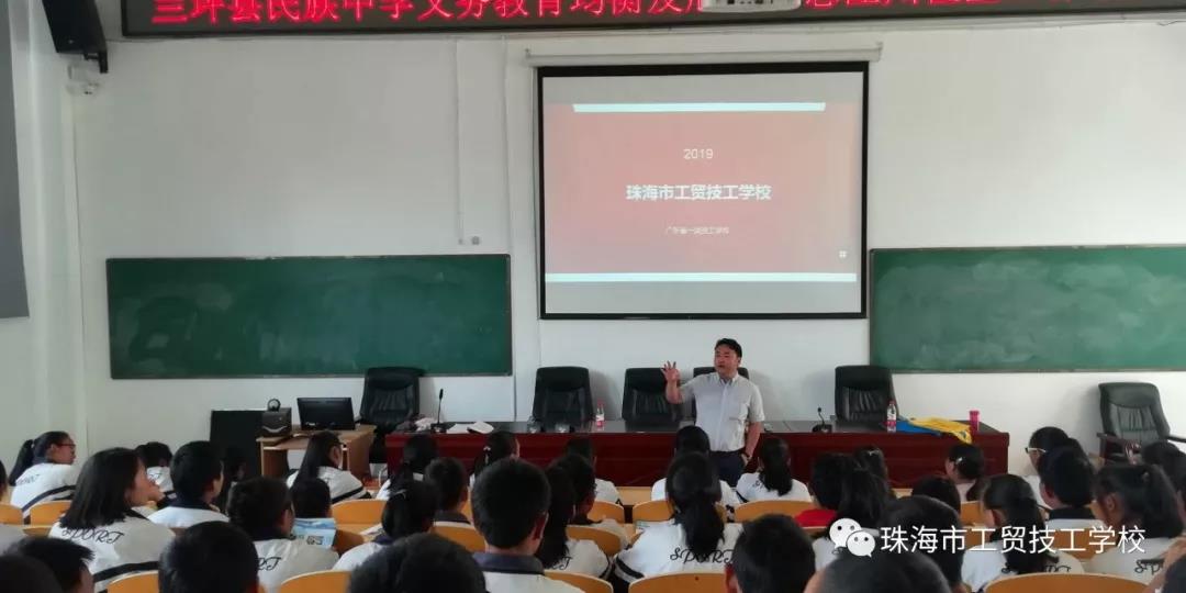 在宣讲之行中,校长凌梓馨及副校长王平向怒江学子详细讲解了国家的扶贫政策及我校的基本情况,校园环境、专业特色以及在读怒江学子的学生生活情况。他们希望怒江的同学们能来到珠海市工贸技工学校就读,学一技之长,造福家庭与社会。