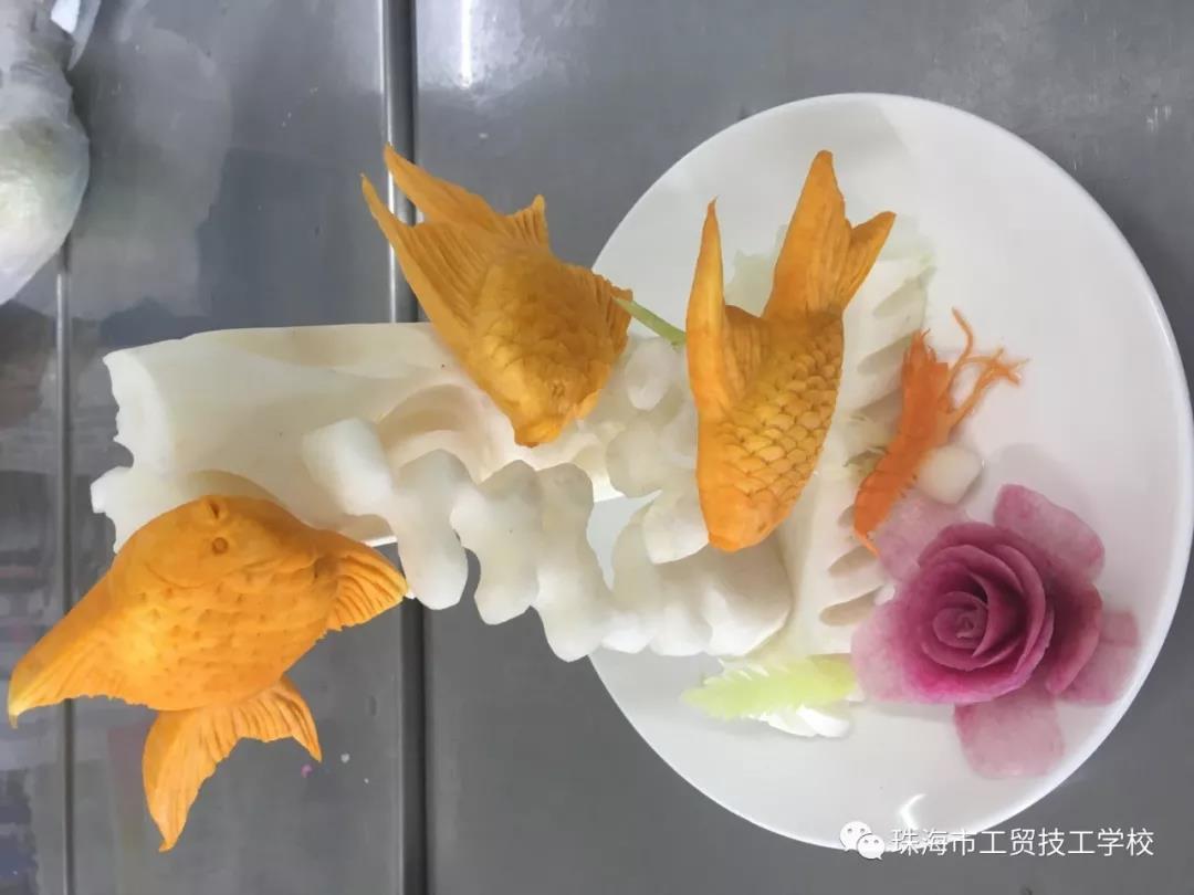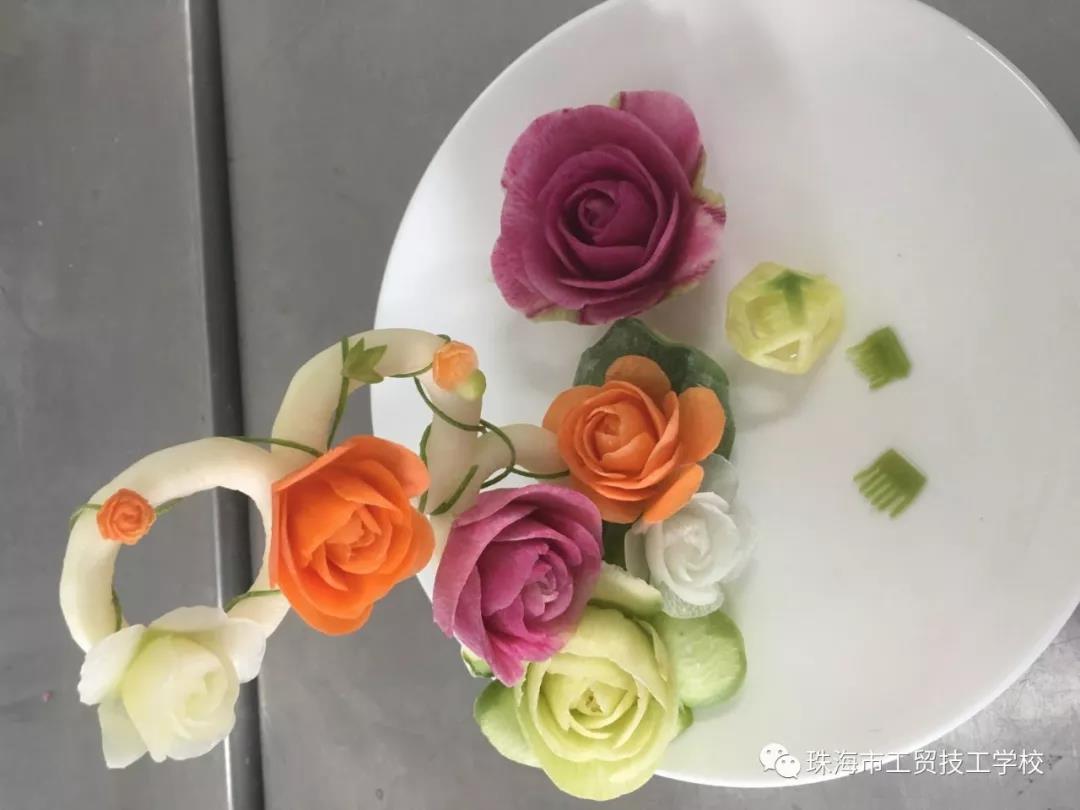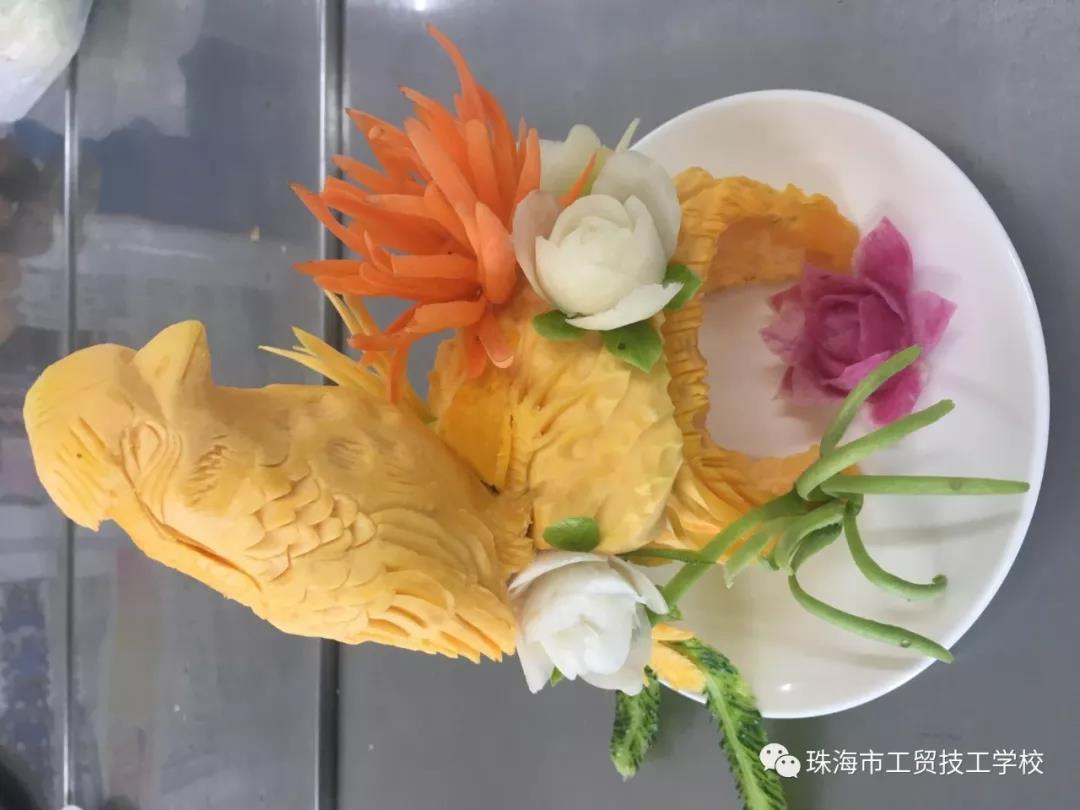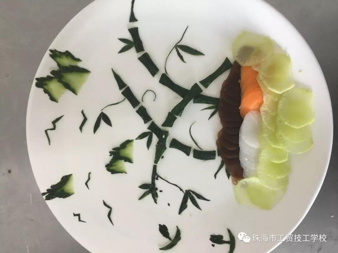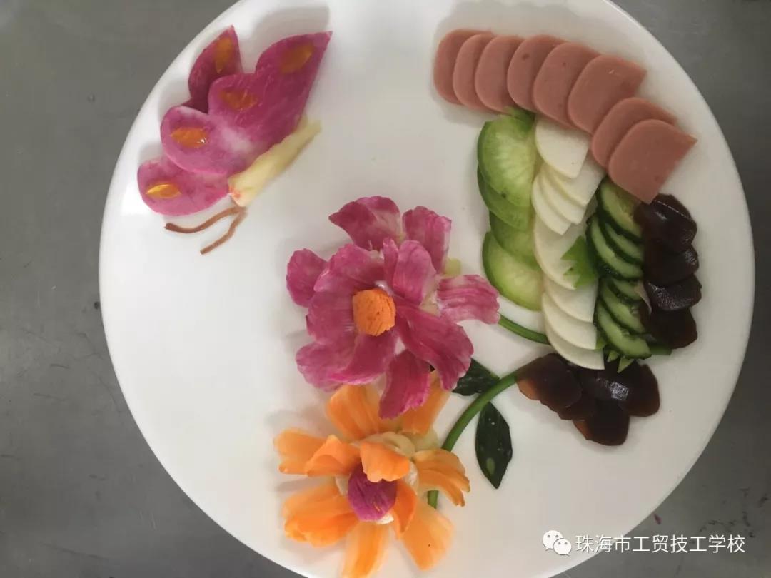 花式创意冷拼,让食材开口说话。礼仪队的同学们将选手的成品进行成果展,让我们在得到物质享受的同时,也得到了艺术的熏陶,展示出食物带给我们的美丽及感染力。