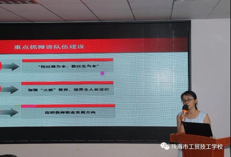 最后由邱少文总监上台讲话。她强调全体教职员工要不忘初心,牢记使命,时刻铭记自己的教师身份,牢记自己的一言一行,在学生面前展现个人良好的素养,并且能全面、准确认知教师的职责,合理定位自身的发展目标和路径,不断提高自己的教学水平和专业能力。她还要求各系部要凝心聚力,以更强烈的责任感、使命感去开展工作。