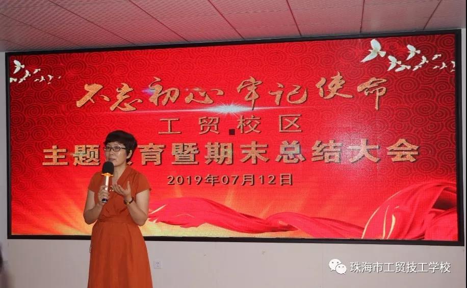 为深入学习习近平总书记在“不忘初心、牢记使命”主题教育工作会议上的讲话精神,并结合集团董事长施隆光博士在集团党委7月1日庆祝中国共产党成立98周年暨表彰大会上所做的“不忘初心,牢记使命”主题教育报告,7月12日, 我校举行“不忘初心 牢记使命”主题教育暨期末总结大会。金网国际教育管理集团职业教育事业部总监邱少文,珠海市工贸技工学校校长凌梓馨,副校长王平,校长助理张祖恩、刘玲杉、王立男、谢宇龙及全体教职员工参加了此次大会。