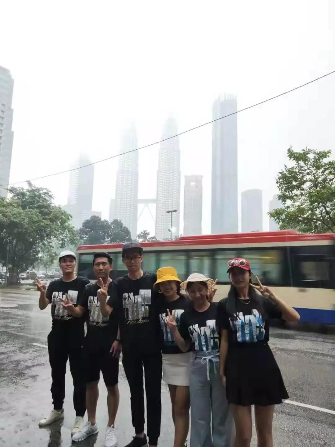 如果说一个人的旅行是天马行空的话,那么一群人可以玩得天翻地覆。老师们在太子城的时候就购买了印有吉隆坡地标的t裇,约定在地标处拍集体照。到达双子星的时候,天降暴雨。为了不留遗憾,老师们在暴雨中扔掉雨伞,绽放笑容,按下快门。也许这张照片的构图与角度都不是最美的,但我们的执着与激情定格在这一秒,青春有张不老的脸,这一刻,我们都是热血青年!
