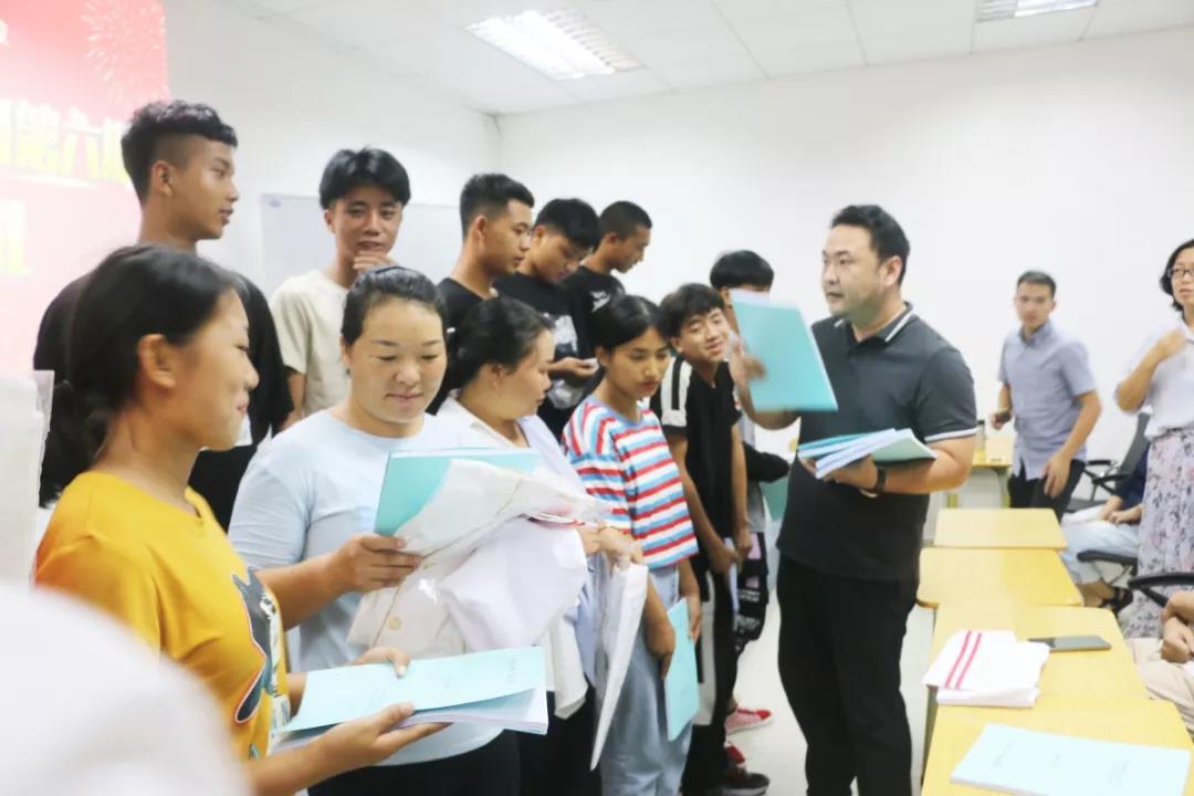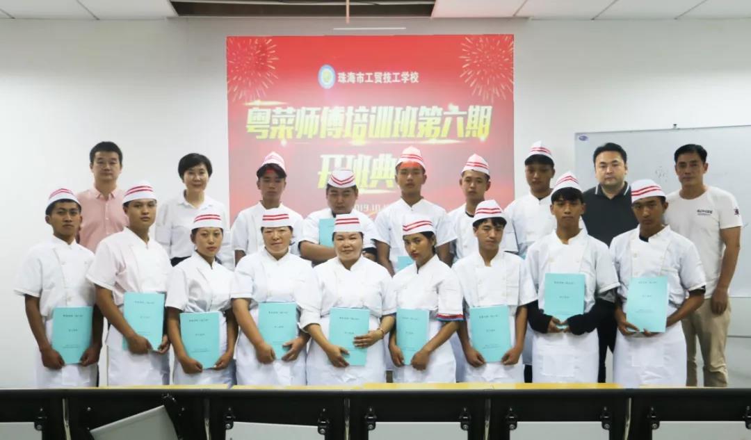 珠海市工贸技工学校致力于教育领域的精准“智力扶贫”工作的同时,也不断探索适合怒江人民喜爱乐学的短期技能培训。在珠海、怒江两地人社局的组织下,2018年年初至2019年上半年,我校在珠海独家开设了5期短期培训班。国庆期间,学校迎来了“粤菜师傅”培训班第六期的怒江学员。10月10日下午,珠海市工贸技工学校举行了“粤菜师傅”怒江短训班第六期的开班典礼。金网国际教育管理集团职业教育事业部总监邱少文,珠海市工贸技工学校校长凌梓馨,副校长王平、候卫东,校长助理张祖恩、刘玲杉、王立男、谢宇龙等主要领导出席了此次开班典礼。