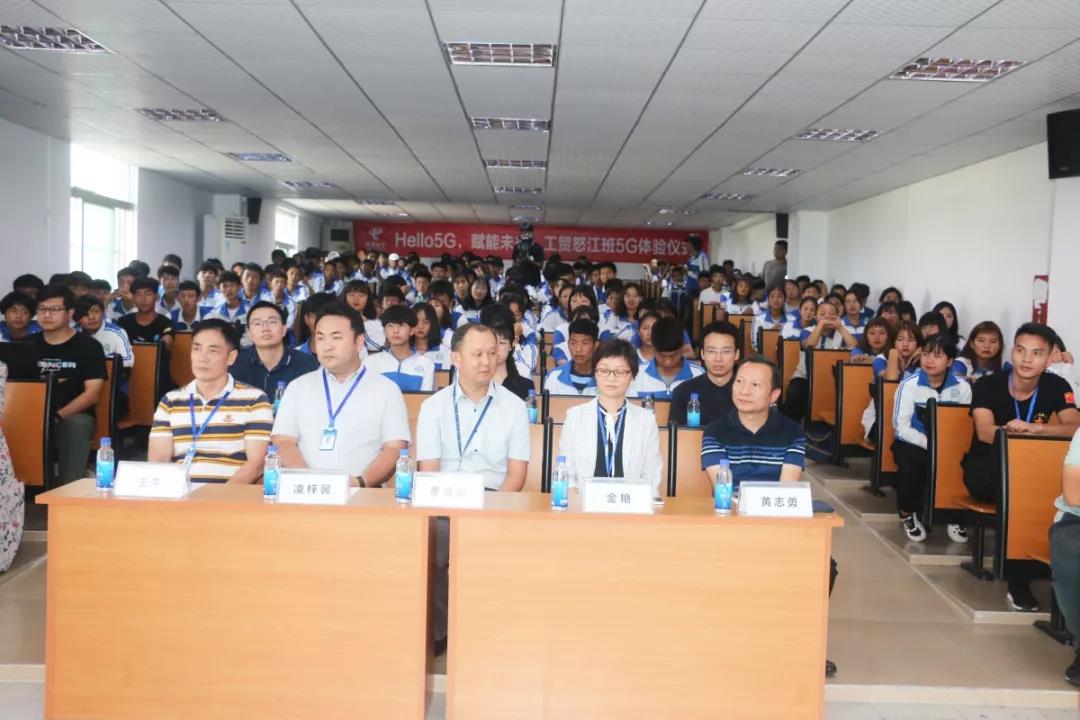 校长凌梓馨首先讲话,他对中国电信股份有限公司珠海分公司领导及专家的到来表示热烈的欢迎,希望19级怒江的同学们能通过此次交流会深入体验以及了解5G的发展以及国家高科技的发展。