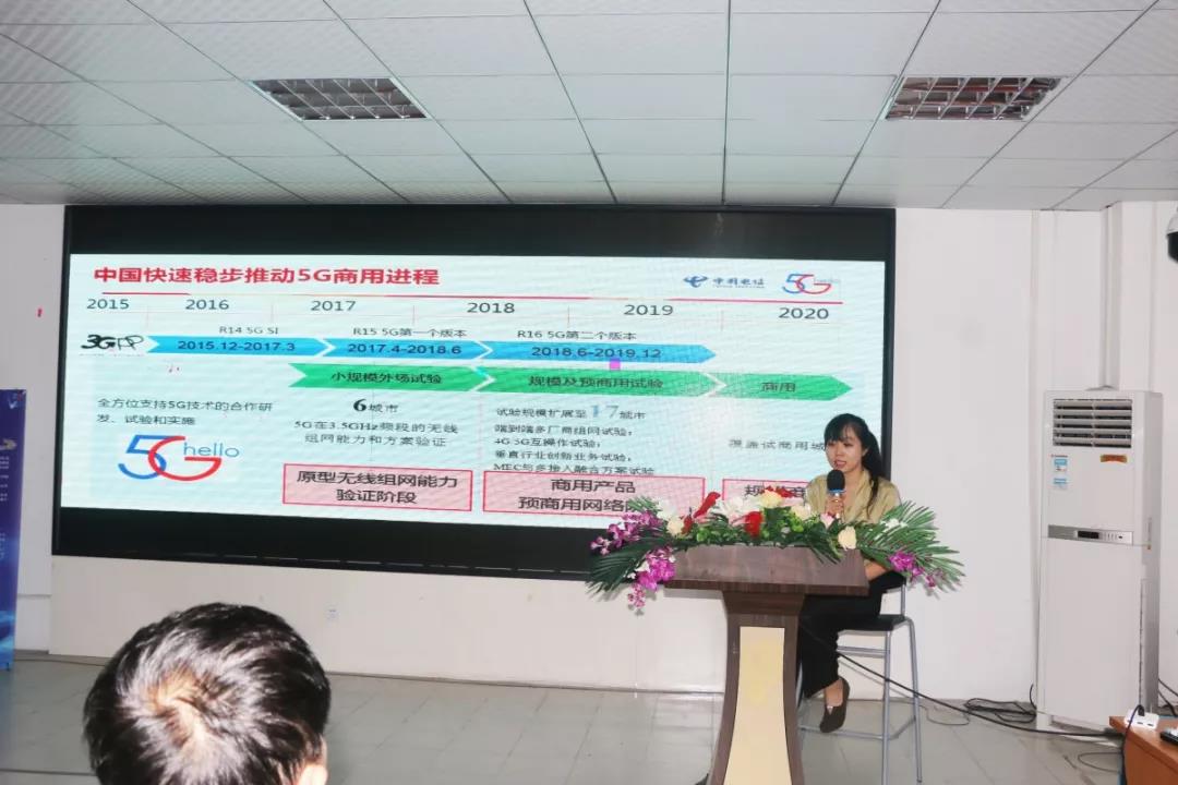 为使学生能够充分了解5G的独特魅力,深入感受以5G为代表的先进通信网络科技真正的“速度与激情”,10月23日,珠海市工贸技工学校与中国电信股份有限公司珠海分公司共同举办了一场充满科技感和未来感的5G体验交流会。中国电信股份有限公司珠海分公司副总经理董亚彪,中国电信股份有限公司珠海校园中心总经理金艳,中国电信股份有限公司珠海横琴新区分公司副总经理黄志勇,中国电信股份有限公司无线中心叶桂洪,珠海市工贸技工学校校长凌梓馨、副校长王平、校长助理张祖恩、刘玲杉、王立男等出席交流会。
