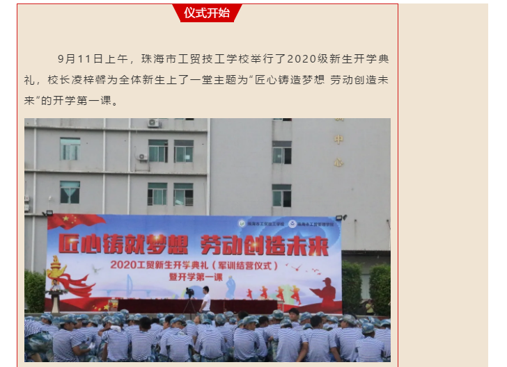 匠心铸就梦想,劳动创造未来|我校2020级新生同上“开学第一课”