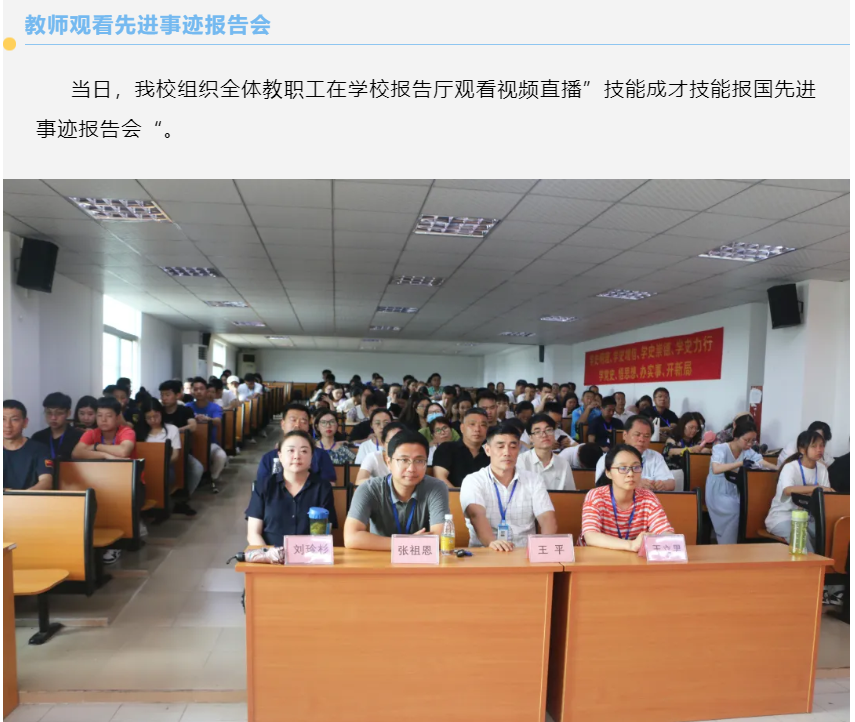 技能成才 技能报国我校组织全体师生观看先进事迹视频报告会