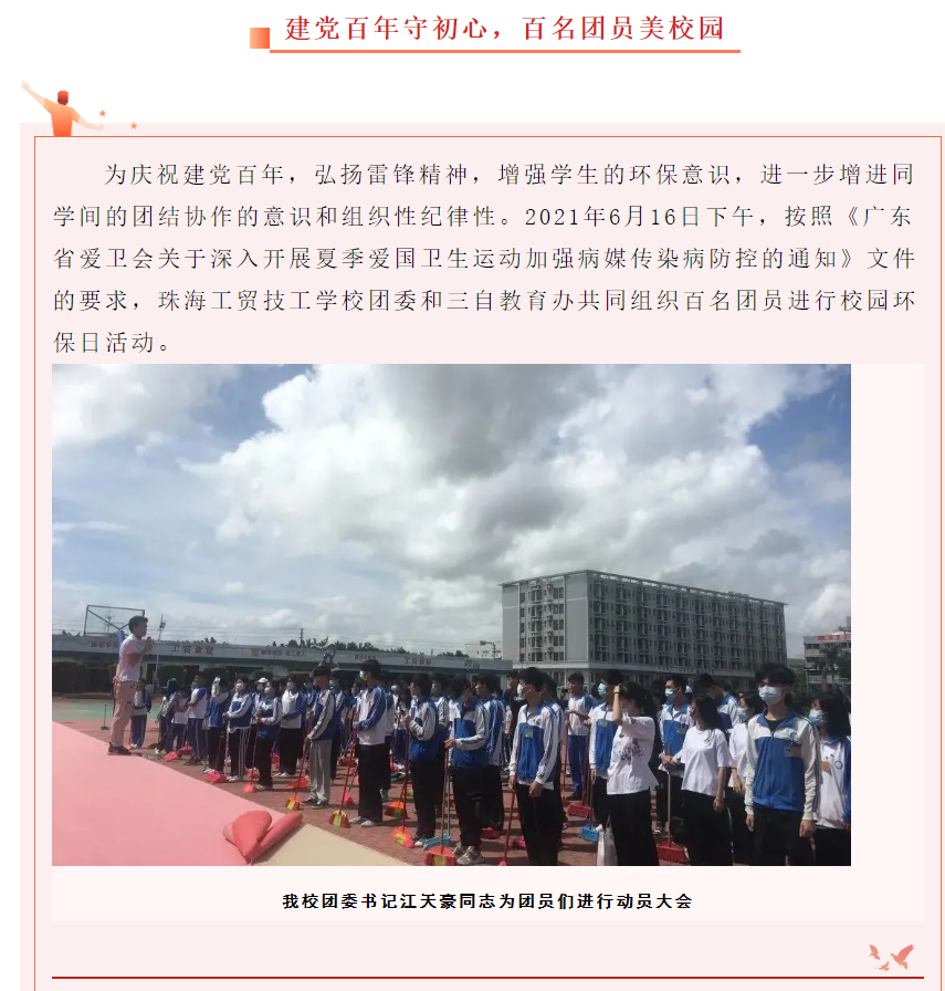 喜迎建党百年,弘扬劳动精神我校百名团员开展爱国卫生运动