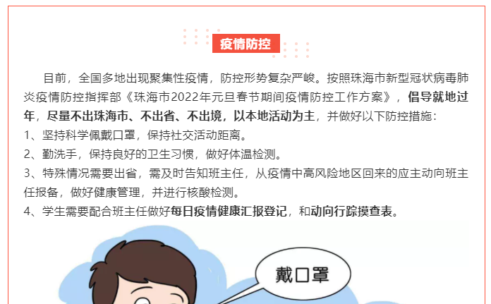 放假啦!珠海市工贸技工学校2022年寒假放假通知及安全注意事项