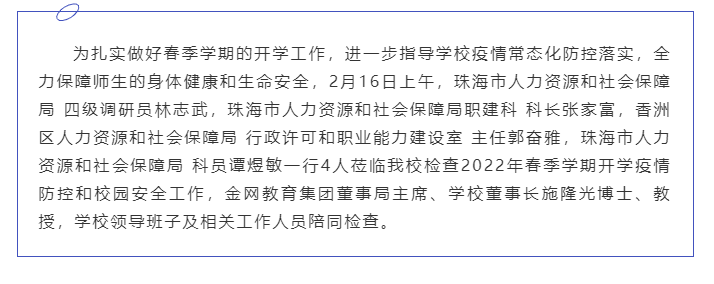 珠海市人社局检查组莅临我校检查开学疫情防控和校园安全工作