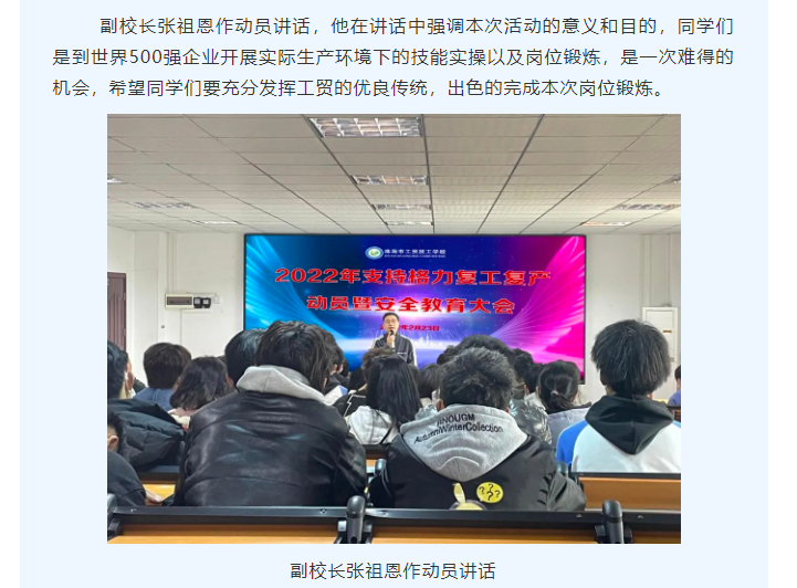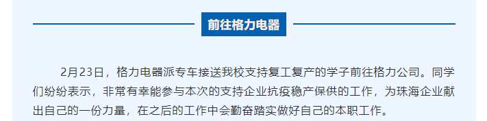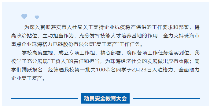 发挥技校服务效能 助力企业复工复产工贸学子支援格力电器抗疫稳产保供