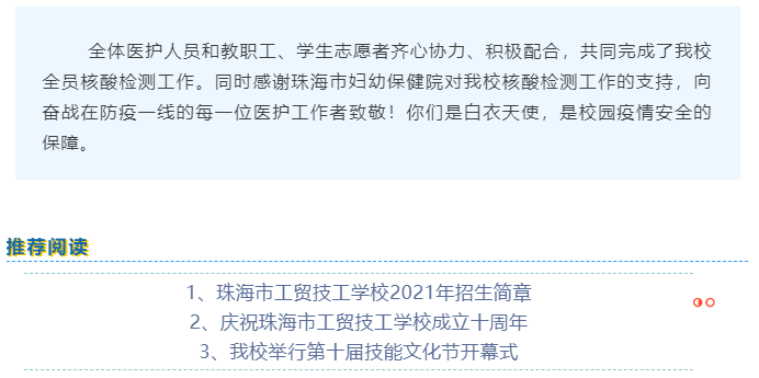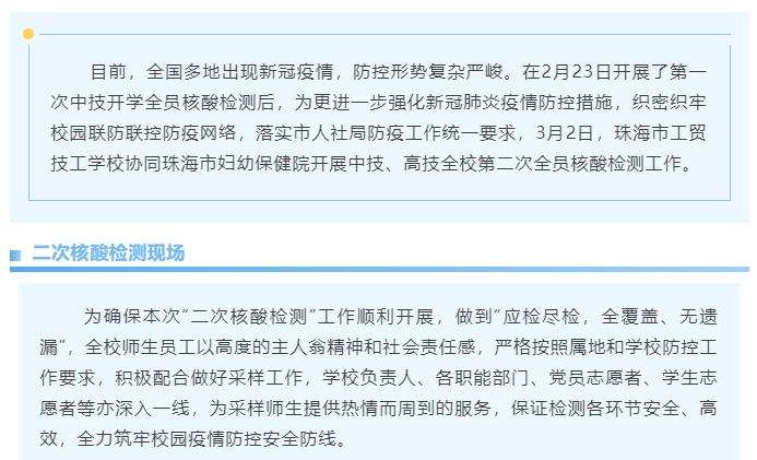 携手抗“疫”珠海市工贸技工学校开展春季开学第二次全员核酸检测