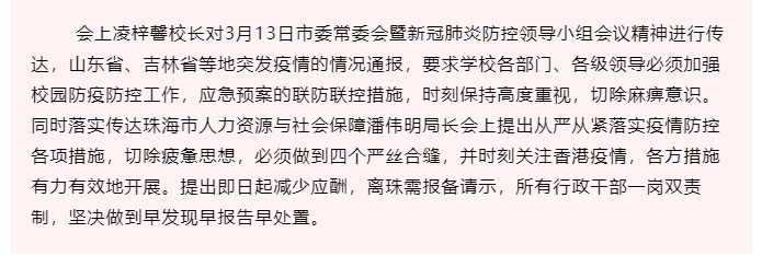 严防严控珠海市工贸技工学校召开疫情防控专题紧急会议