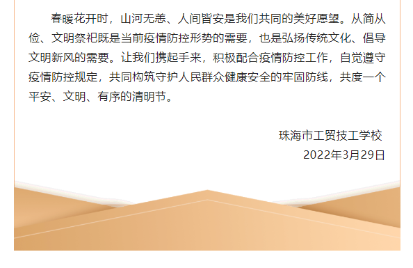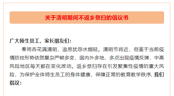 关于清明期间不返乡祭扫的倡议书