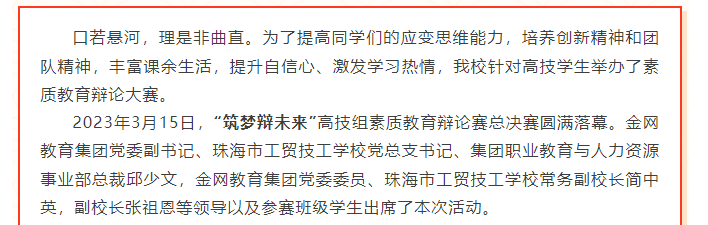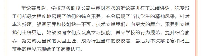 “筑梦辩未来”工贸素质教育辩论大赛总决赛(高技组)圆满落幕