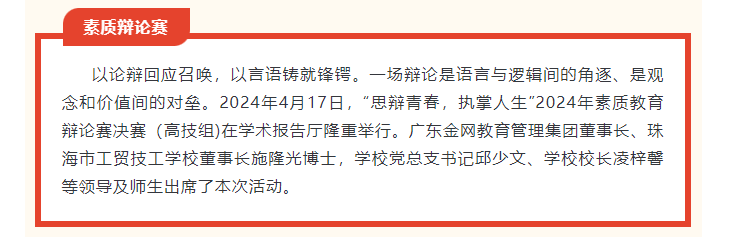 思辩青春,执掌人生工贸素质教育辩论大赛总决赛(高技组)圆满落幕