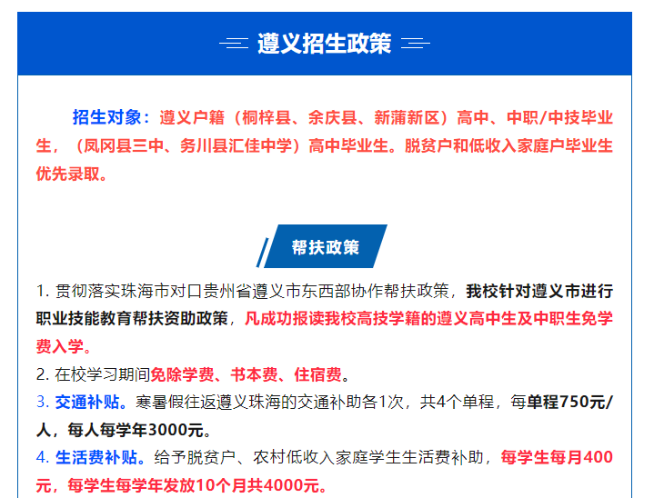 零学费、全补贴!珠海市工贸技工学校2025年“遵义定向班”启动招生啦