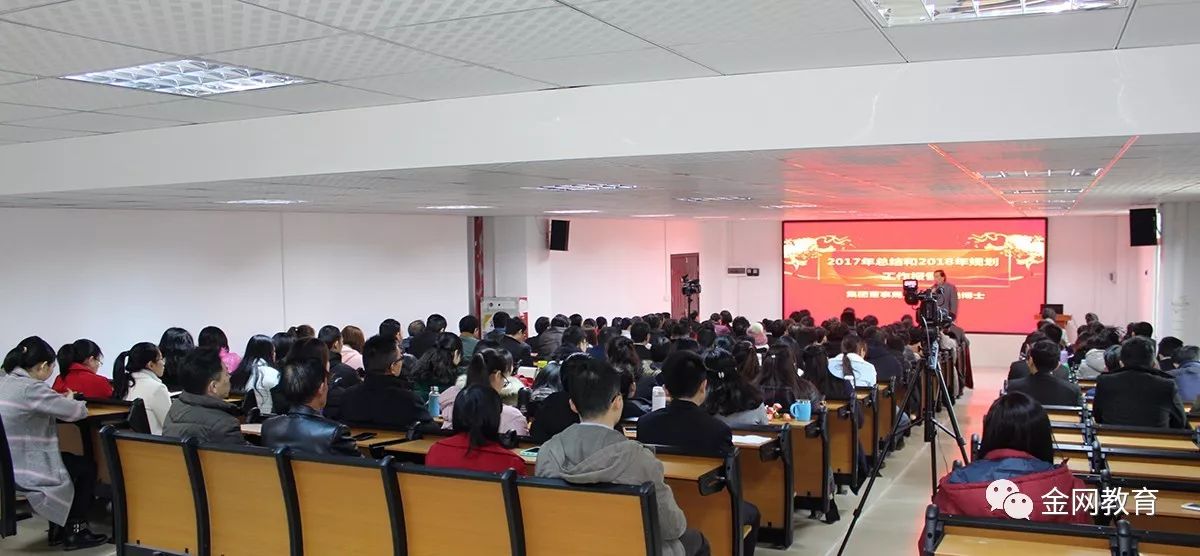 长河悠远,天地常新。奋发图强的2017年尚未远去,充满希望和挑战的2018年已经到来。2月2日下午,以“新时代、新精神、新跨越”为主题的金网国际教育管理集团2017年总结暨表彰大会在工贸校区学术报告厅隆重举行。