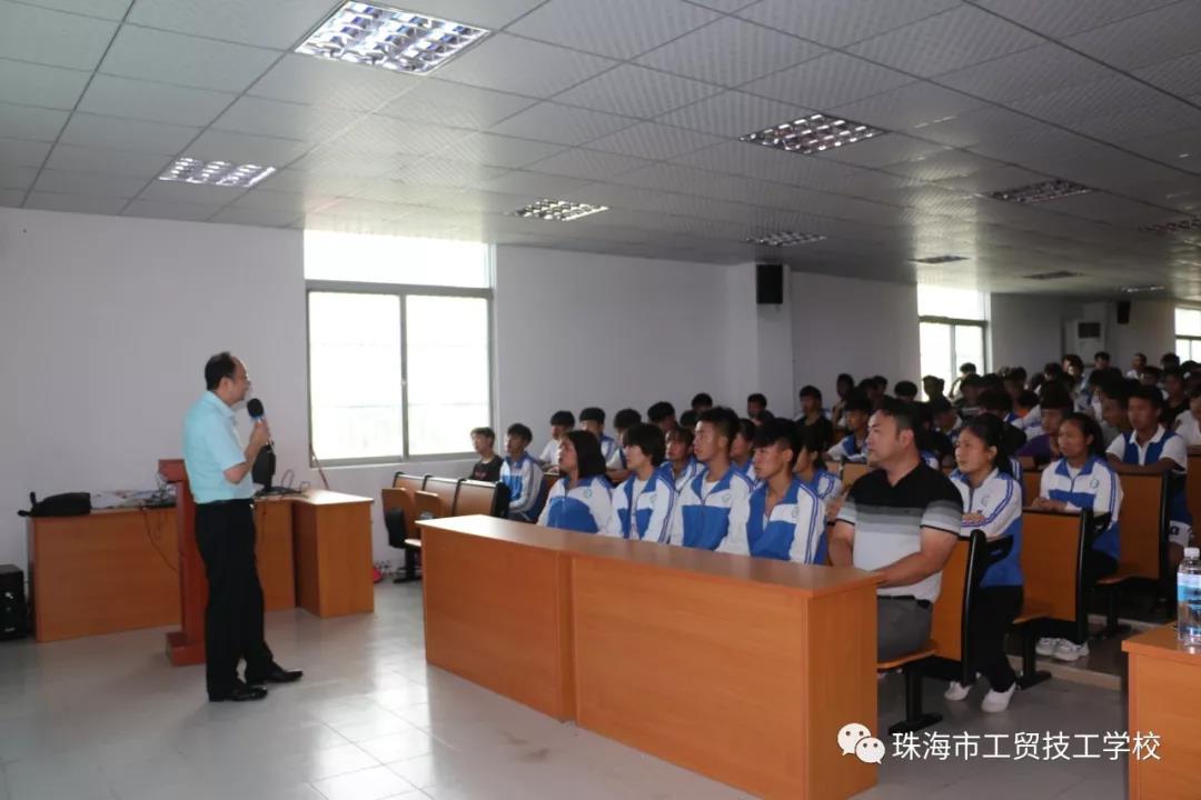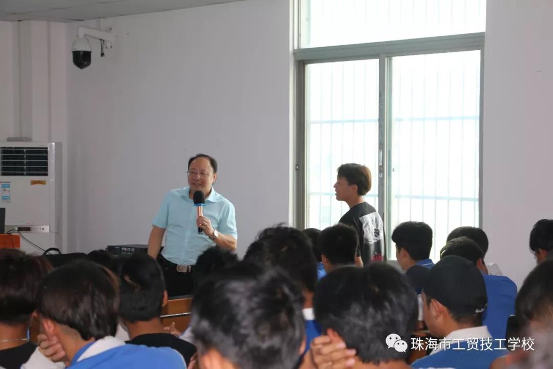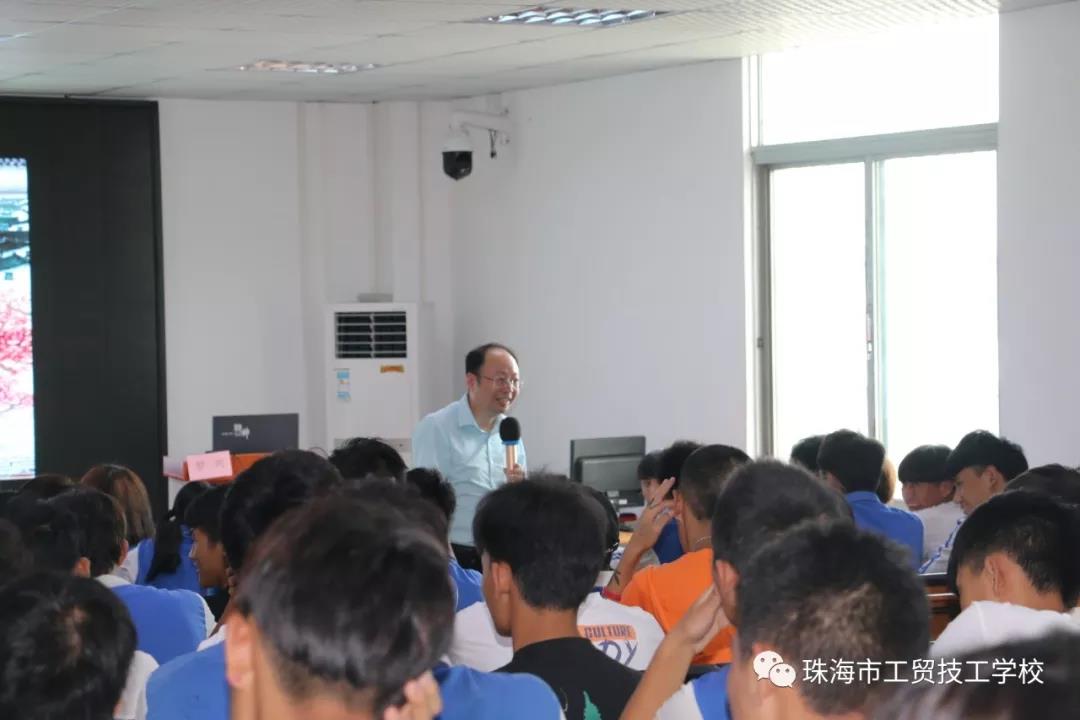 首先由珠海市工贸技工学校校长凌梓馨讲话,他对罗兴副教授的到来表示欢迎,希望同学们能在大讲堂中认真听讲,并从中能够学到对自身有用的知识。