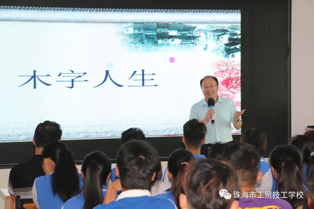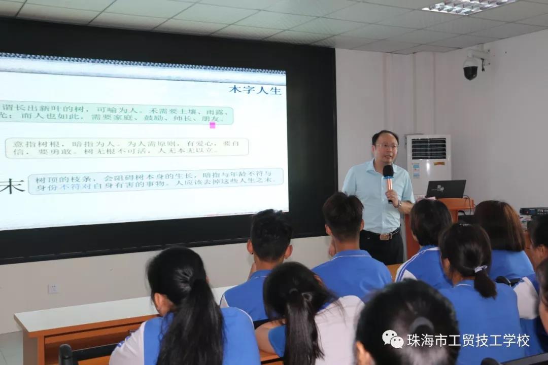 为了丰富怒江班同学的文化生活,提升综合能力,开阔人生视野,树立正确的价值观,6月14日下午,珠海市工贸技工学校特邀金网国际教育管理集团党委委员、职业教育事业部副总监、北大青鸟珠海软件学院院长、美国西东大学MBA罗兴副教授前来为怒江班的同学们上了一堂主题为“木字人生”的讲座。