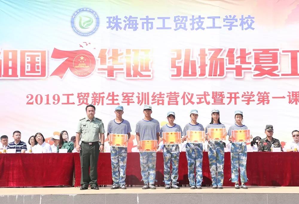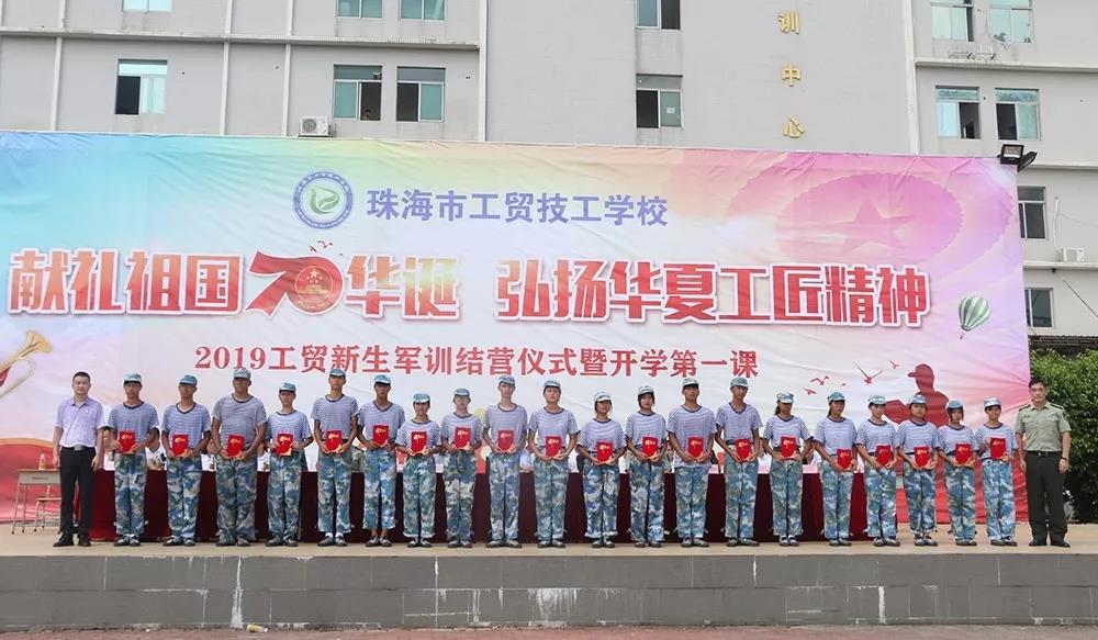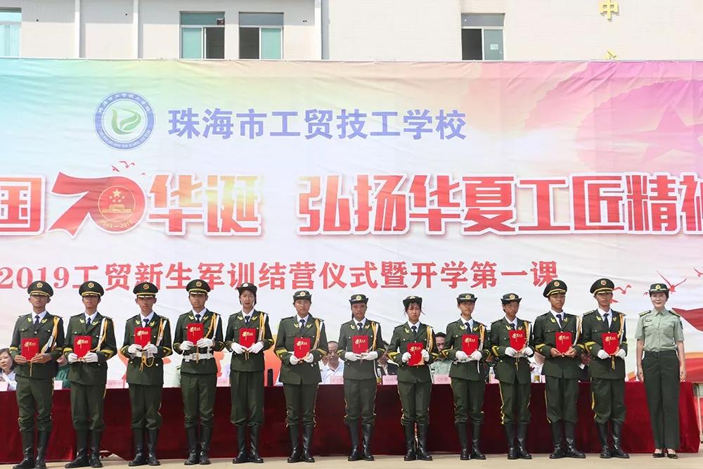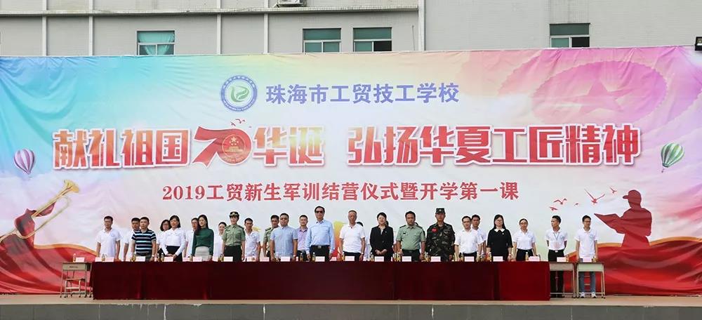 为庆祝建国七十周年,大力弘扬工匠精神,也为了向家长和老师们汇报同学们十天的军训成果,9月11日上午,珠海市工贸技工学校隆重举行了主题为“献礼祖国70华诞,弘扬华夏工匠精神”的2019级新生军训结营仪式暨开学第一课。珠海市人社局、原市技工学校校长、人社部技工教育国家督导专家张中洲,香洲区中小企业发展促进会会长张远维,洪湾派出所副所长、珠海市工贸技工学校法制教导主任林佛柱,金网国际教育管理集团董事局主席施隆光博士,以及金网国际教育管理集团党委委员及旗下各院校的负责人、部分学生家长和全体师生参加了此次仪式。
