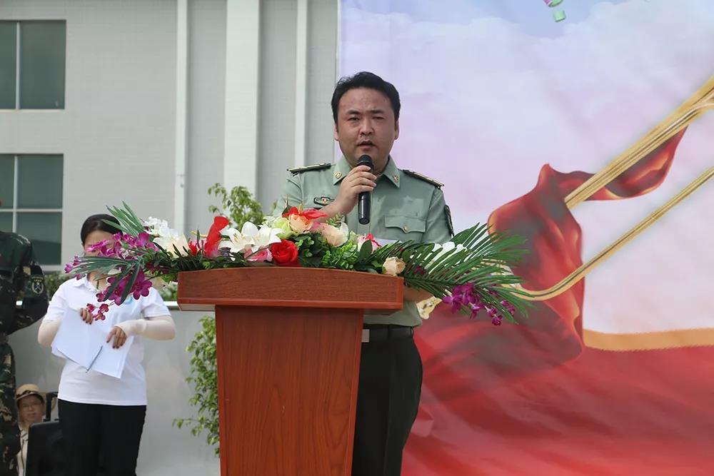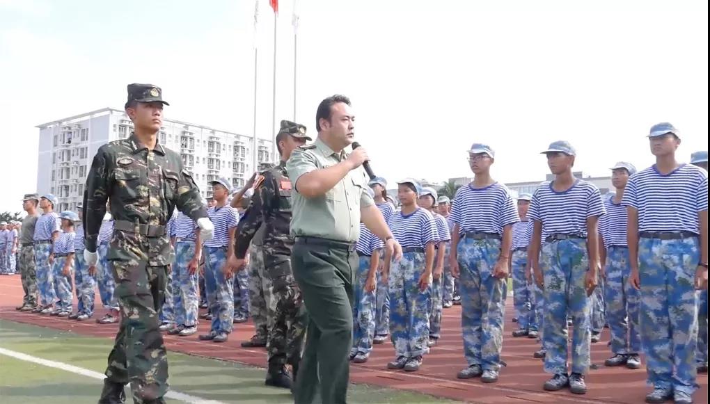 汇操表演完毕后,珠海市人社局 、原市技工学校校长、人社部技工教育国家督导专家张中洲致词。他对工贸技工学校的取得的成绩给予了充分的肯定,对军训新生的表现给予了高度的赞扬。在致词中张校长还强调技能人才的重要性,希望同学们能够在学校里学到高超技术,为国家的发展贡献力量。最后他给同学们提出了要求,希望同学们通过三年的教育,到达成人、成才、走向成功的目标,能够成为粤港澳大湾区发展的有用之人。
