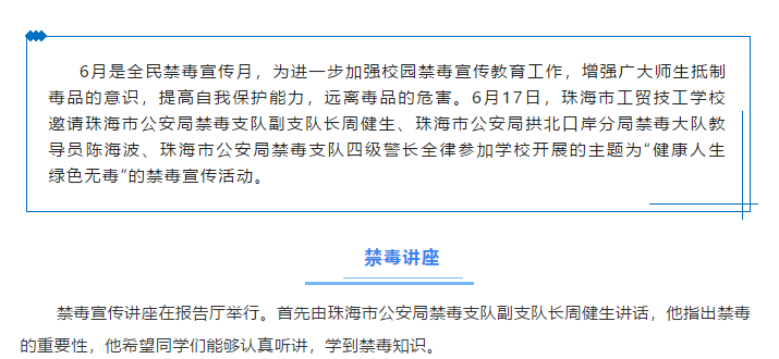 健康人生 绿色无毒|珠海市工贸技工学校开展禁毒宣传活动