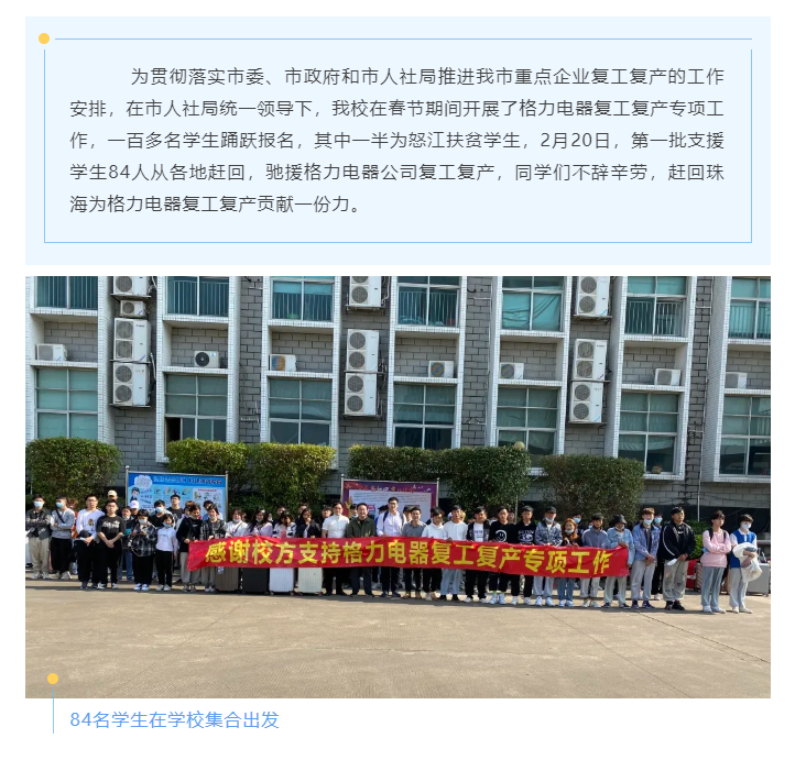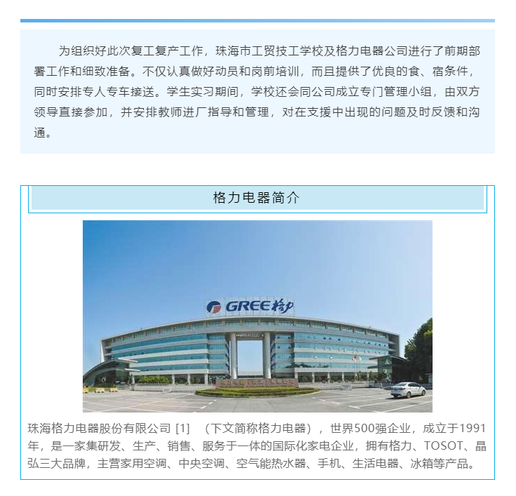 千里驰援,助力复产珠海市工贸技工学校支持格力电器复工复产