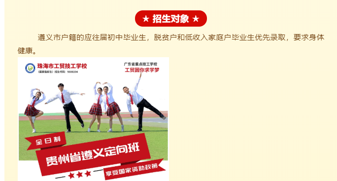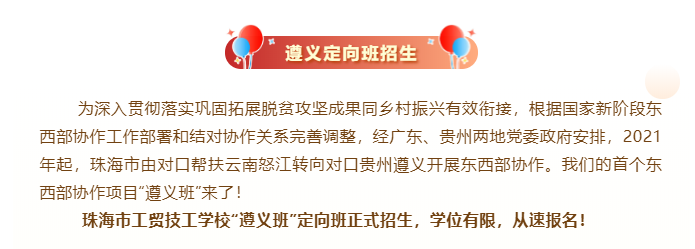 零学费、全补贴!珠海市工贸技工学校“遵义定向班”来了