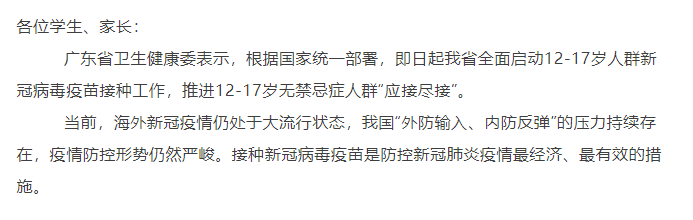 致学生家长!接种新冠疫苗,承担社会责任