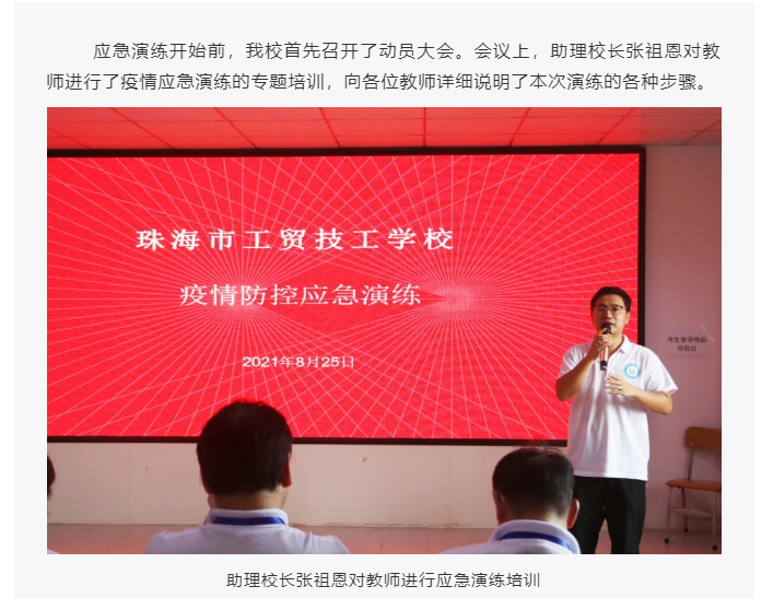 科学演练,护航开学珠海市工贸技工学校开展疫情防控应急演练