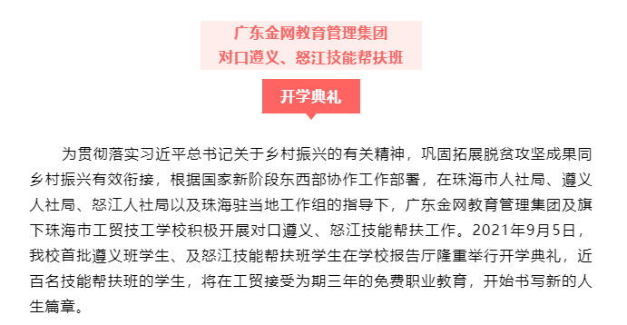 技能帮扶 乡村振兴珠海市工贸技工学校“遵义、怒江技能帮扶班”正式开班了
