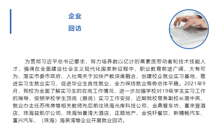 走进企业跟踪回访,稳步推进校企合作工贸技工学校19级顶岗实习企业回访