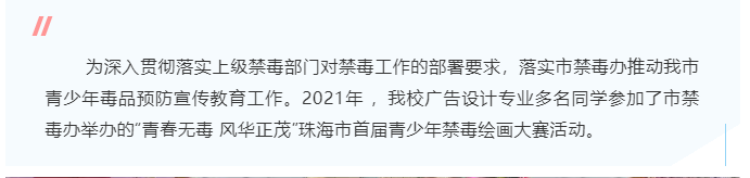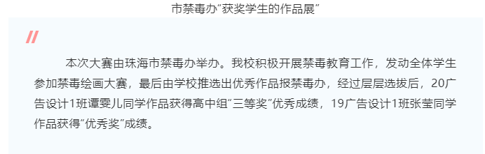 【喜讯】祝贺我校广告专业学生参加“珠海市首届青少年禁毒绘画大赛”获得荣誉