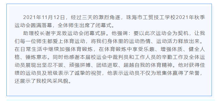致敬建党百年,拼搏时代风采 珠海市工贸技工学校2021年秋季运动会圆满闭幕!
