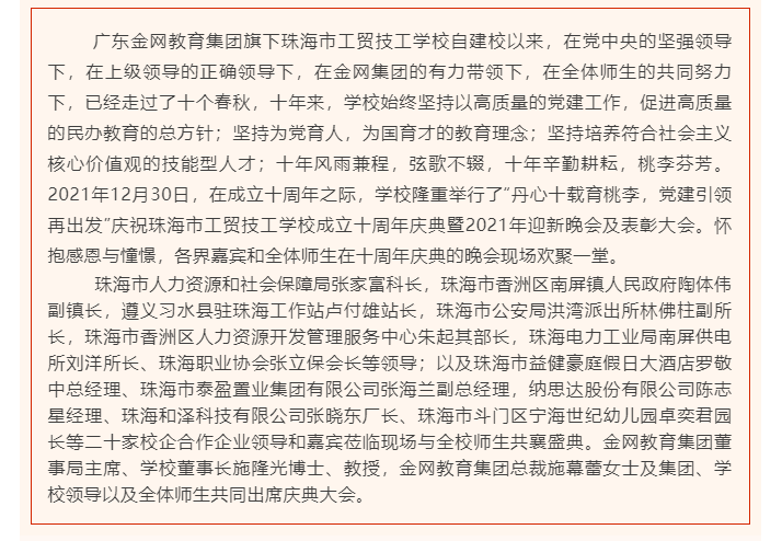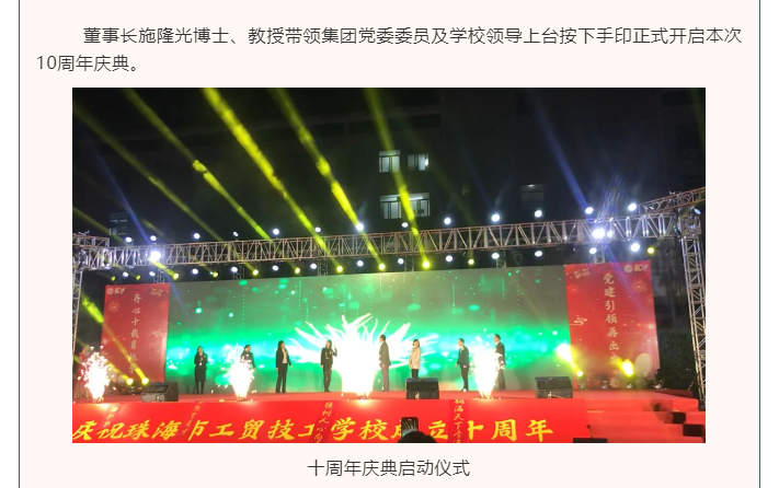 丹心十载育桃李,党建引领再出发庆祝珠海市工贸技工学校成立十周年庆典