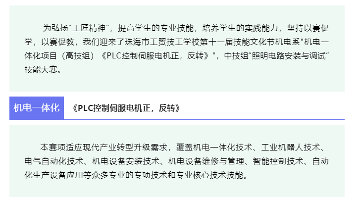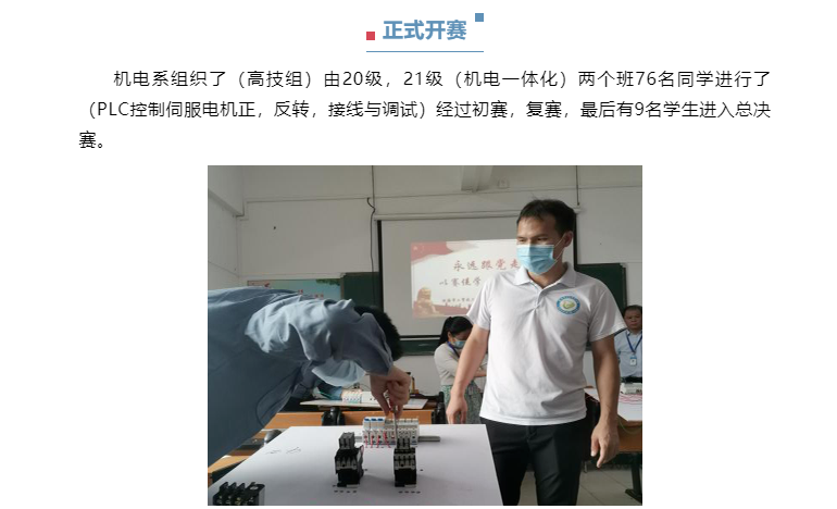 工贸技能文化节|机电系举办《PLC控制伺服电机正反转》《照明电路安装与调试》技能竞赛
