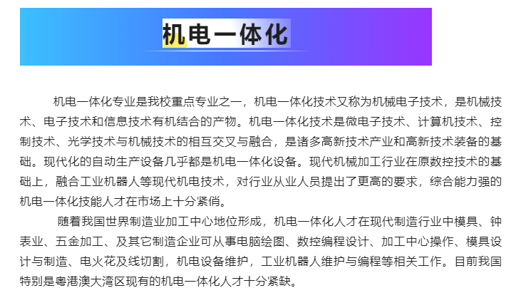 珠海市工贸技工学校——机电一体化(高技)专业介绍