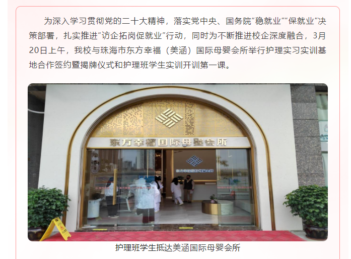 产教融合|我校与珠海美涵母婴会所举行护理实习实训基地合作签约暨揭牌仪式