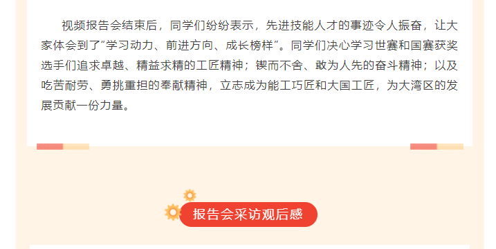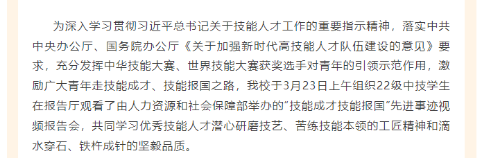 技能成才,技能报国我校组织22级中技学生观看先进事迹视频报告会