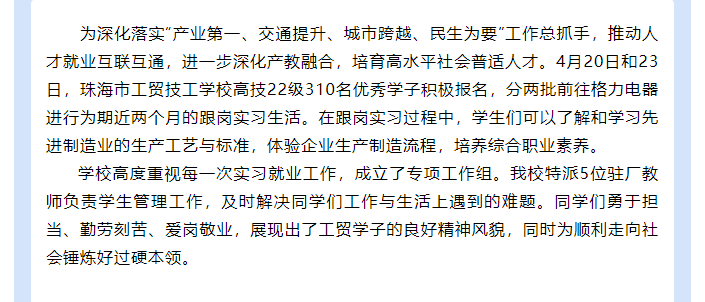 跟岗学习零距离,躬行践履促发展|我校高技22级学生赴格力电器跟岗见习