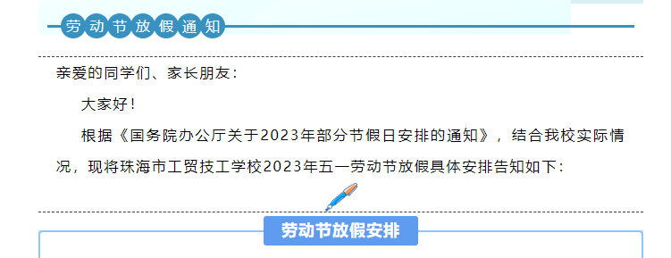 珠海市工贸技工学校2023年五一放假通知及温馨提示