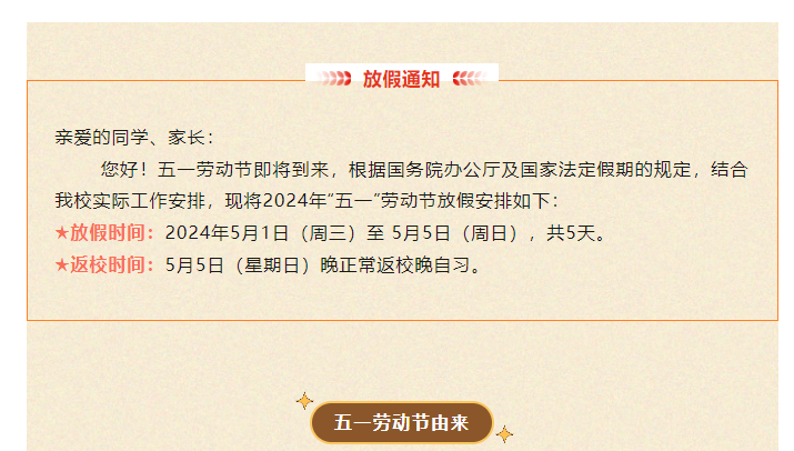 珠海市工贸技工学校2024年五一劳动节放假通知及安全注意事项