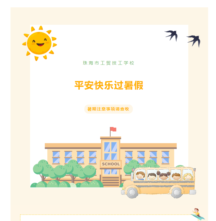 来了!珠海市工贸技工学校暑假放假安排已送达,请查收!