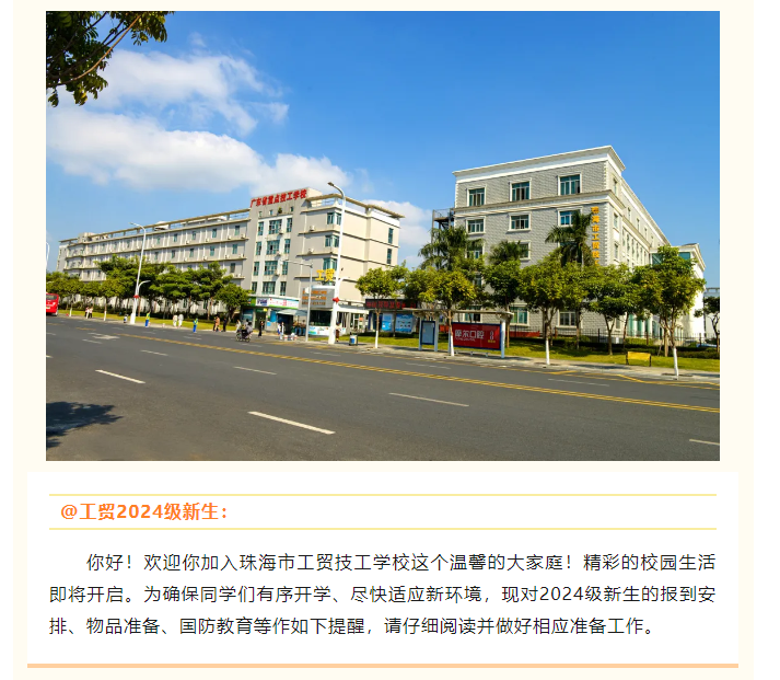 【新生必看】珠海市工贸技工学校2024级新生入学报到须知!