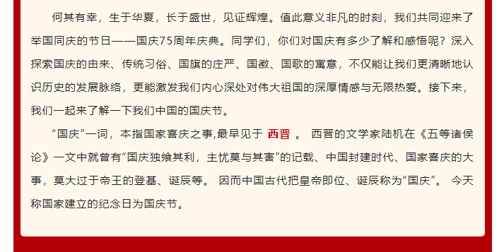【喜迎国庆】热烈庆祝中华人民共和国成立75周年