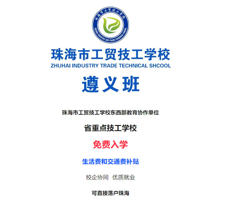 零学费、全补贴!珠海市工贸技工学校2025年“遵义定向班”启动招生啦